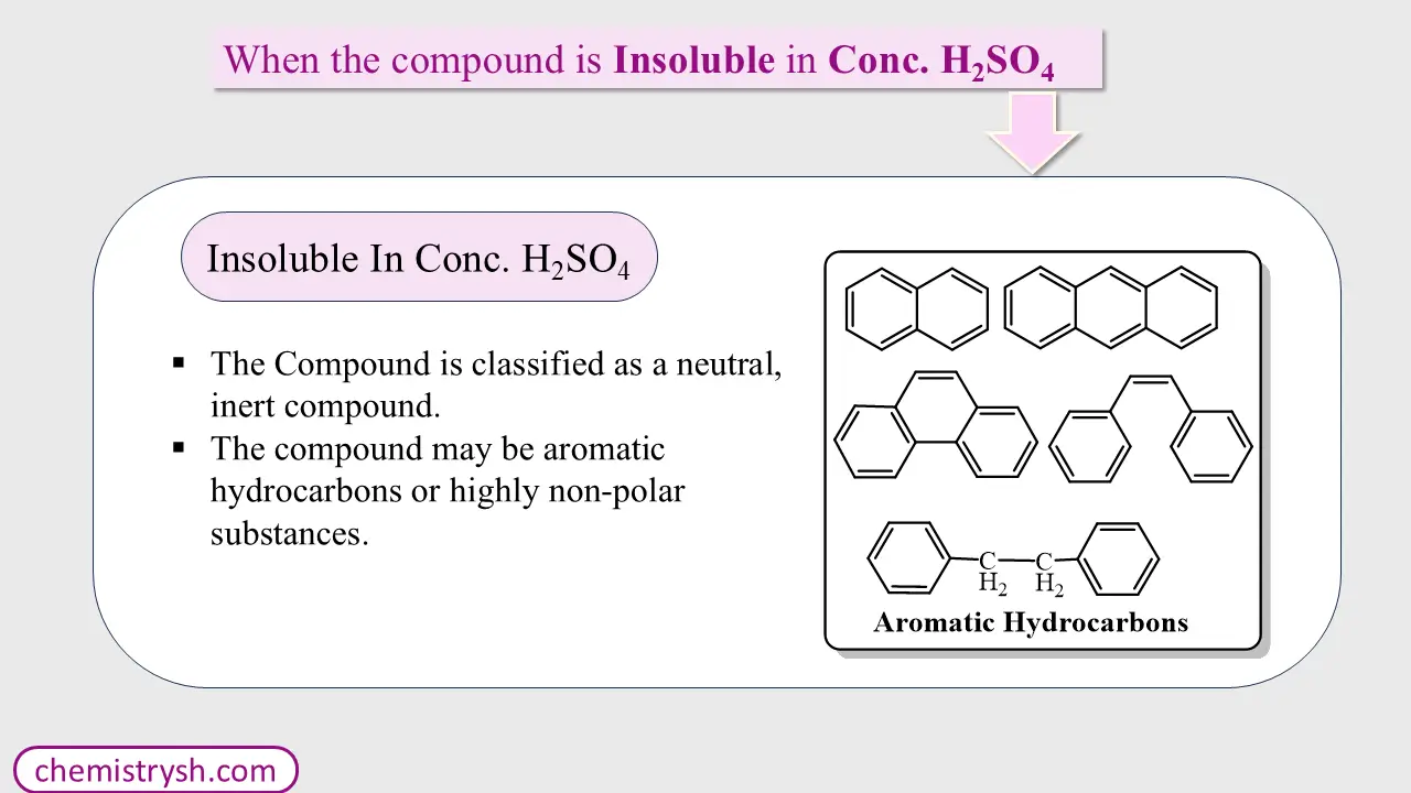 If the compound is insoluble in water, NaOH, and HCl, treat it with cold concentrated sulfuric acid.
