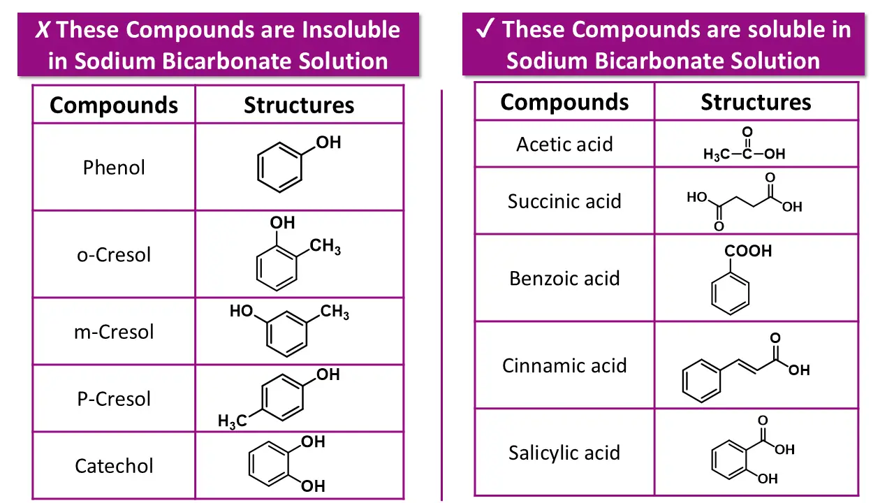 Solubility in Sodium Bicarbonate (NaHCO₃)